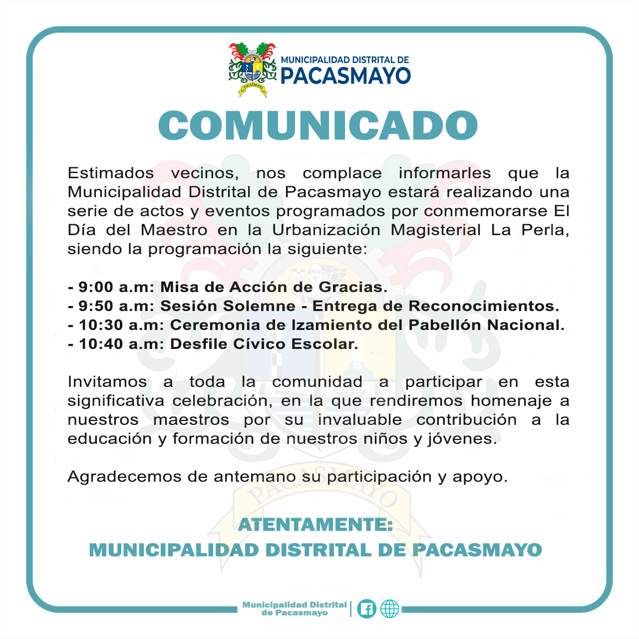 Pacasmayo celebra el Día del Maestro con eventos