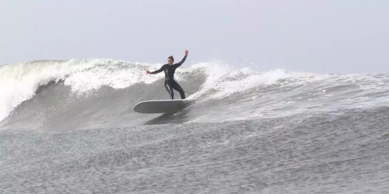 Esta frase resonaba en nuestras cabezas cuando entramos por primera vez en las olas no muy grandes pero aparentemente sin fin desde el punto con su faro distintivo.